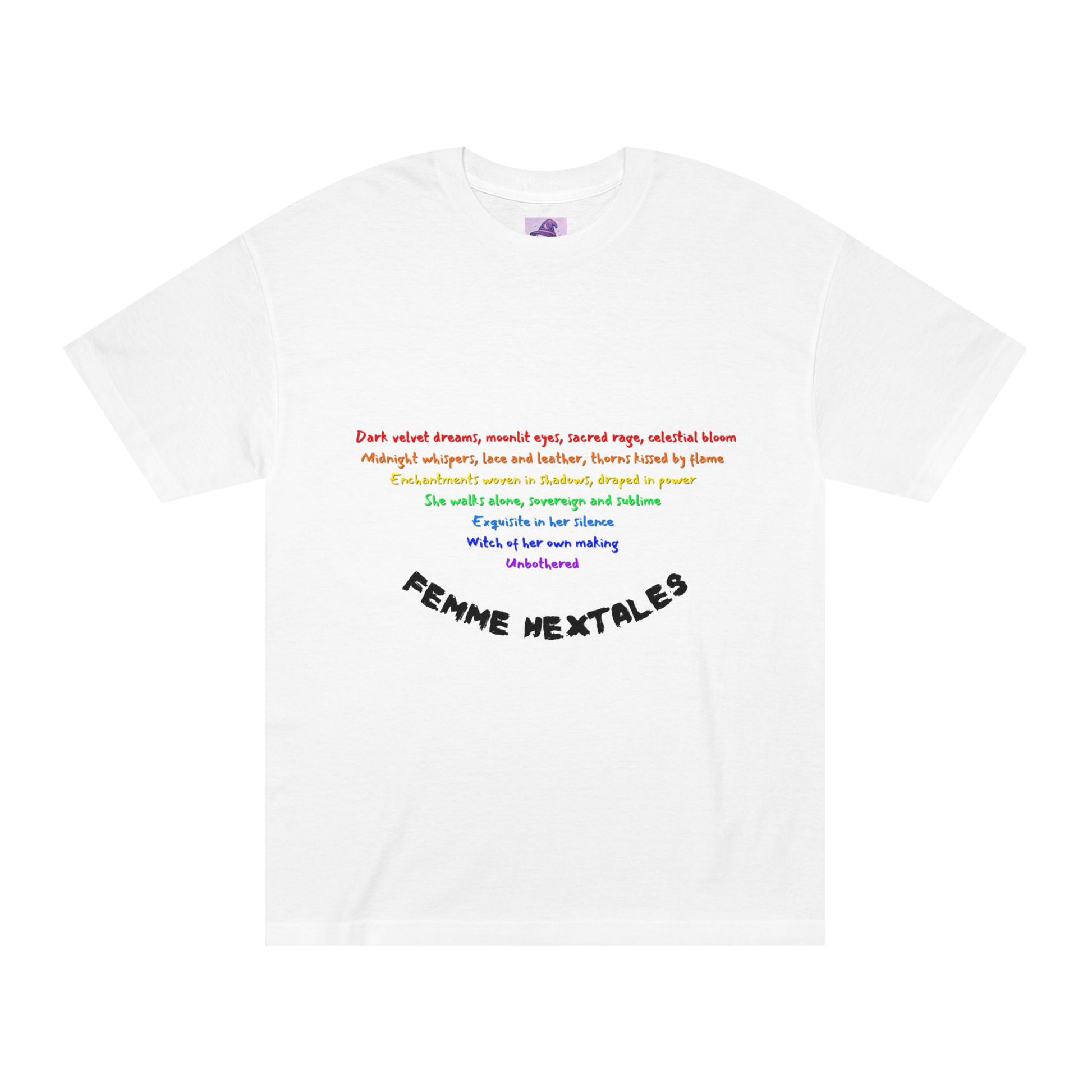 Unleash your inner enchantress with this gothic witchcore statement tee, designed for those who walk their own path in moonlight and mystery. Featuring a powerful reverse triangle poem — from dark velvet dreams to unbothered — this shirt is a tribute to feminine power, witchy independence, and alternative beauty. The vivid rainbow text pops against both black and white fabric, making it a bold, mystical fashion piece that speaks volumes.