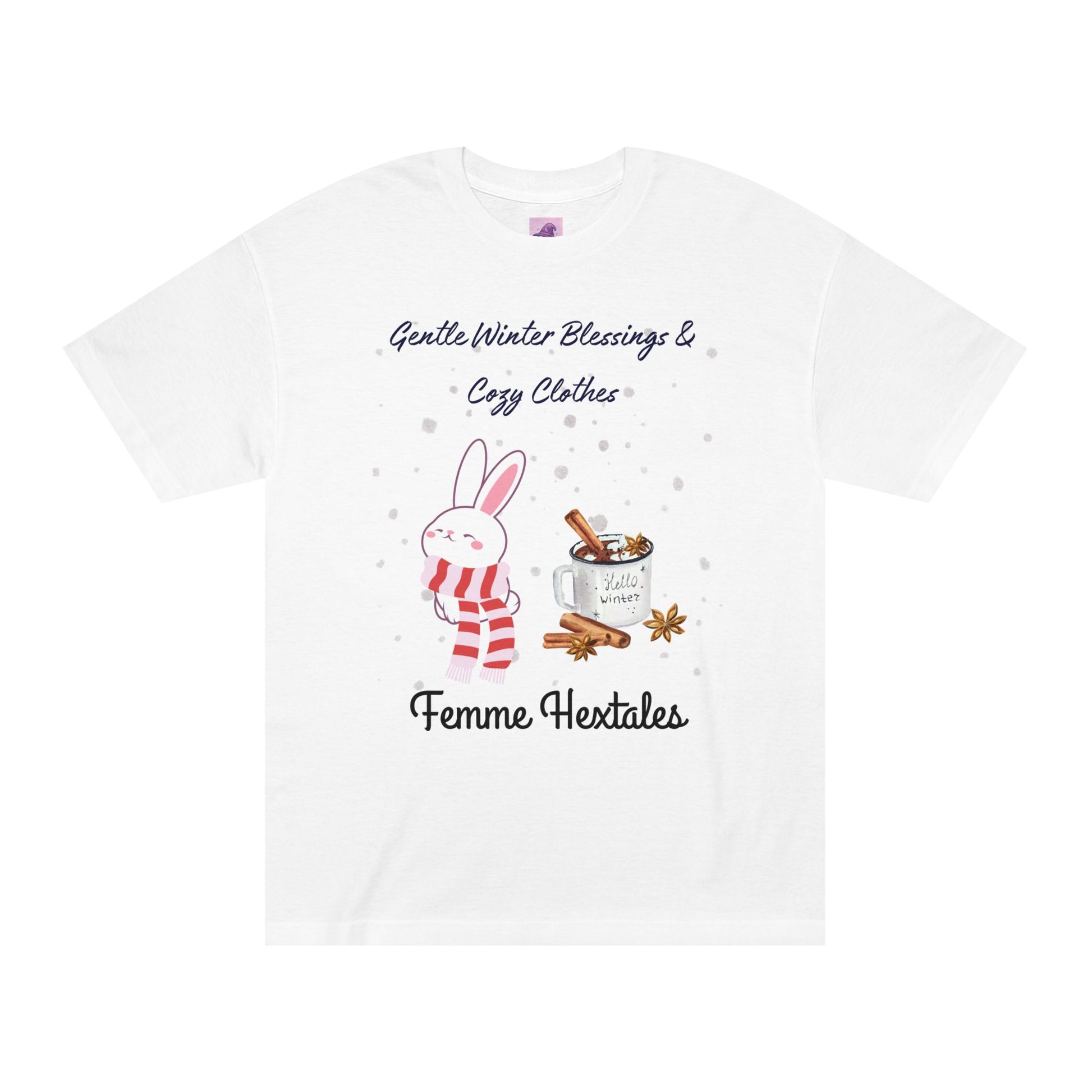 Wrap your space in winter warmth with this Gentle Winter Blessings & Cozy Clothes art print from Femme Hextales. Featuring an adorable bunny bundled in a striped scarf and a magical winter cocoa mug surrounded by cinnamon and star anise, this design blends kawaii softness, witchy winter charm, and pastel goth aesthetics into one cozy piece.