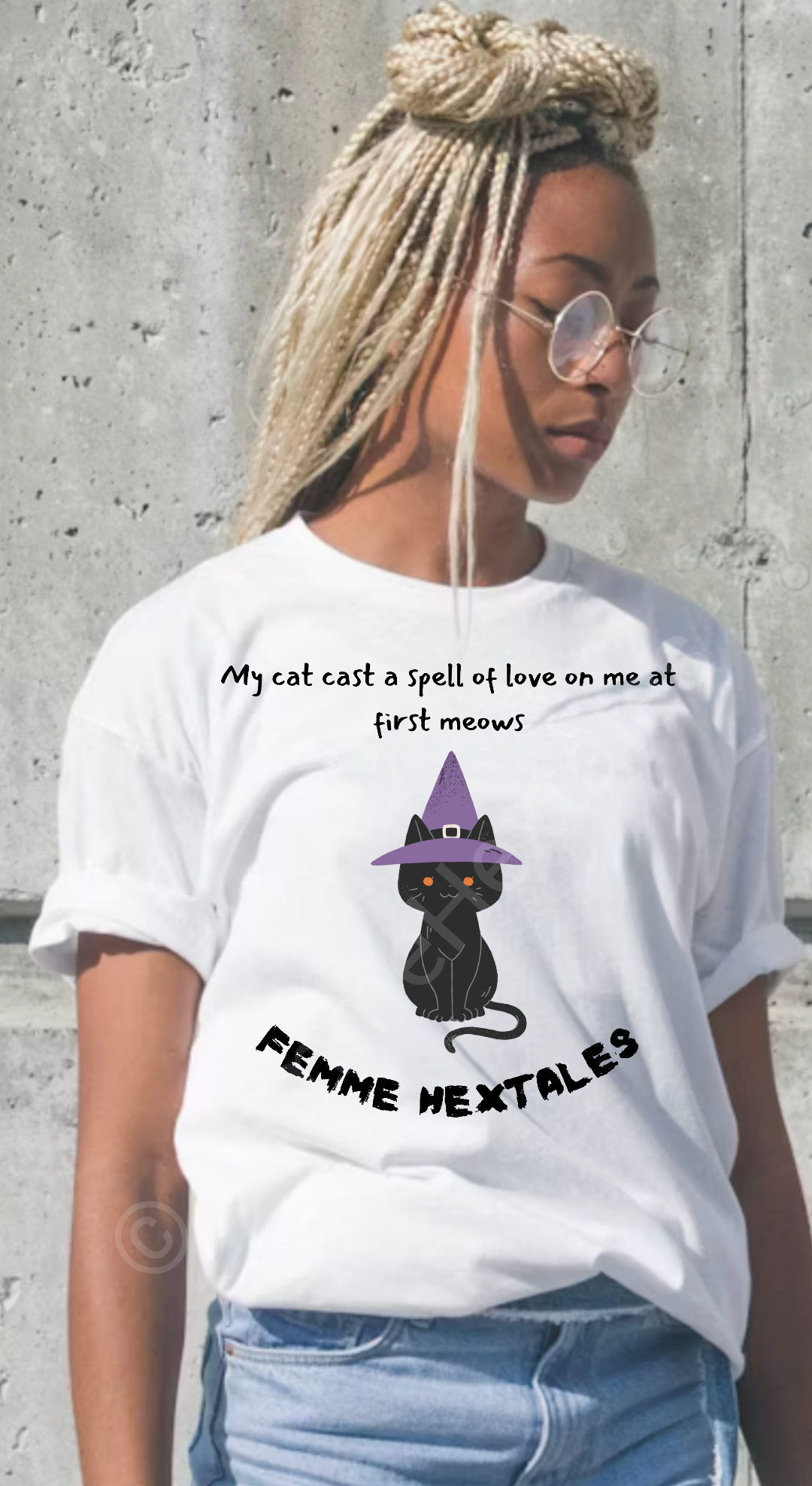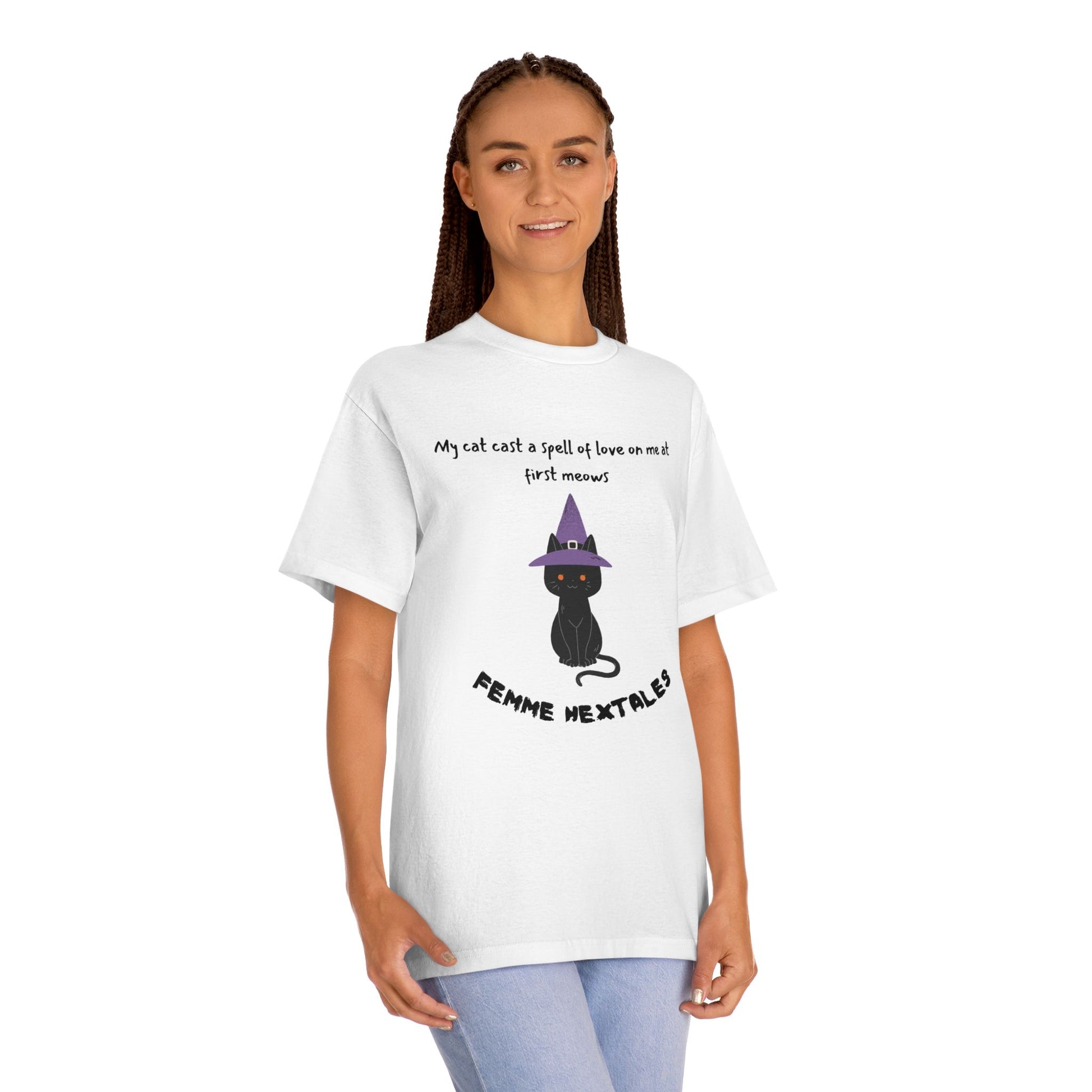 Fall under the purr-fect spell of feline affection with this whimsical witchy cat shirt! Featuring the charming phrase “My cat cast a spell of love on me at first meows,” this tee is ideal for cat moms, occult enthusiasts, and anyone who knows their familiar is their true soulmate. Cozy, cute, and full of magical vibes—wear it for everyday witchy style, Halloween season, or as a sweet gift for your favorite cat lover.